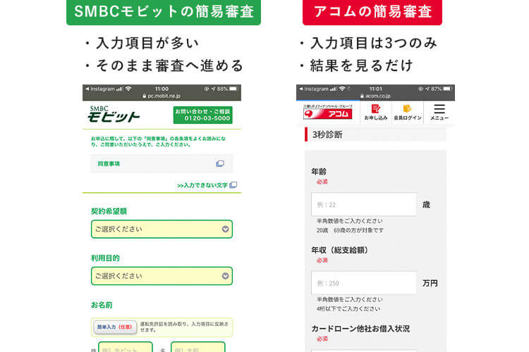 まずはSMBCモビットで借入できるか、スマホですぐに診断できる簡易審査を試してみましょう。