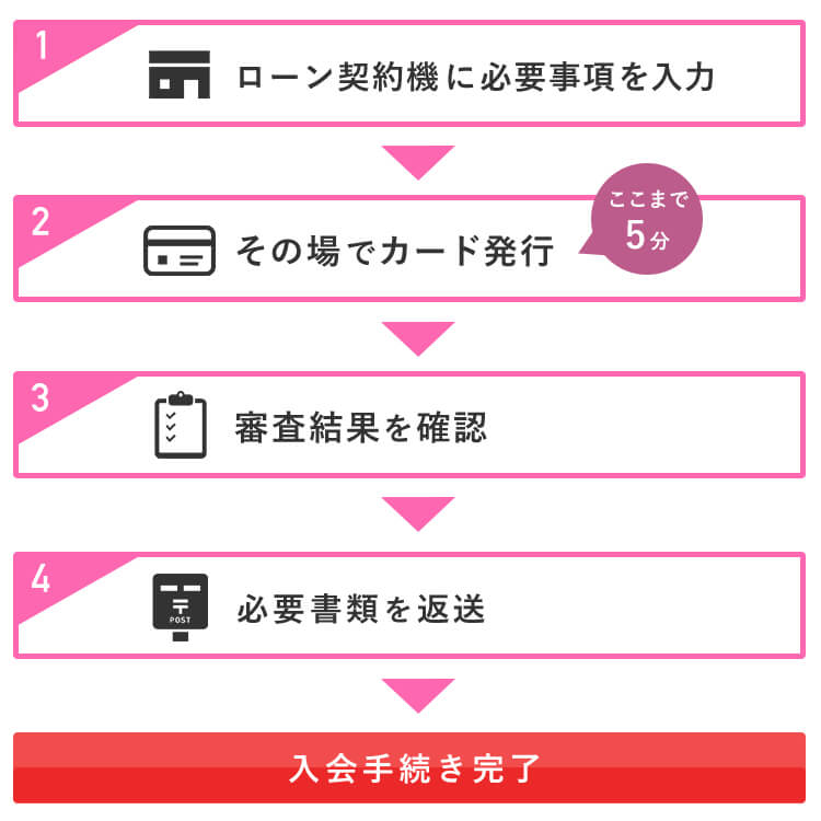 SMBCモビットの審査から借入までの流れは以下のとおり。