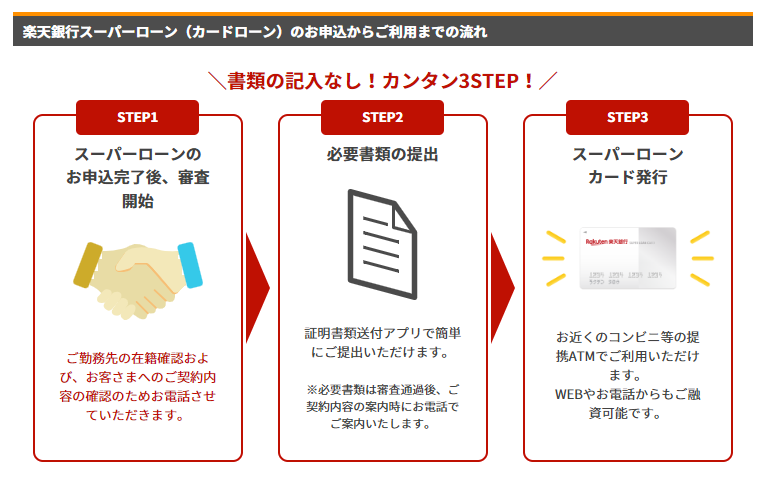 「楽天銀行の口座を開設した」「楽天銀行の口座開設の関係で連絡が来る」と、カードローンのことが周囲にバレずに対応できます。